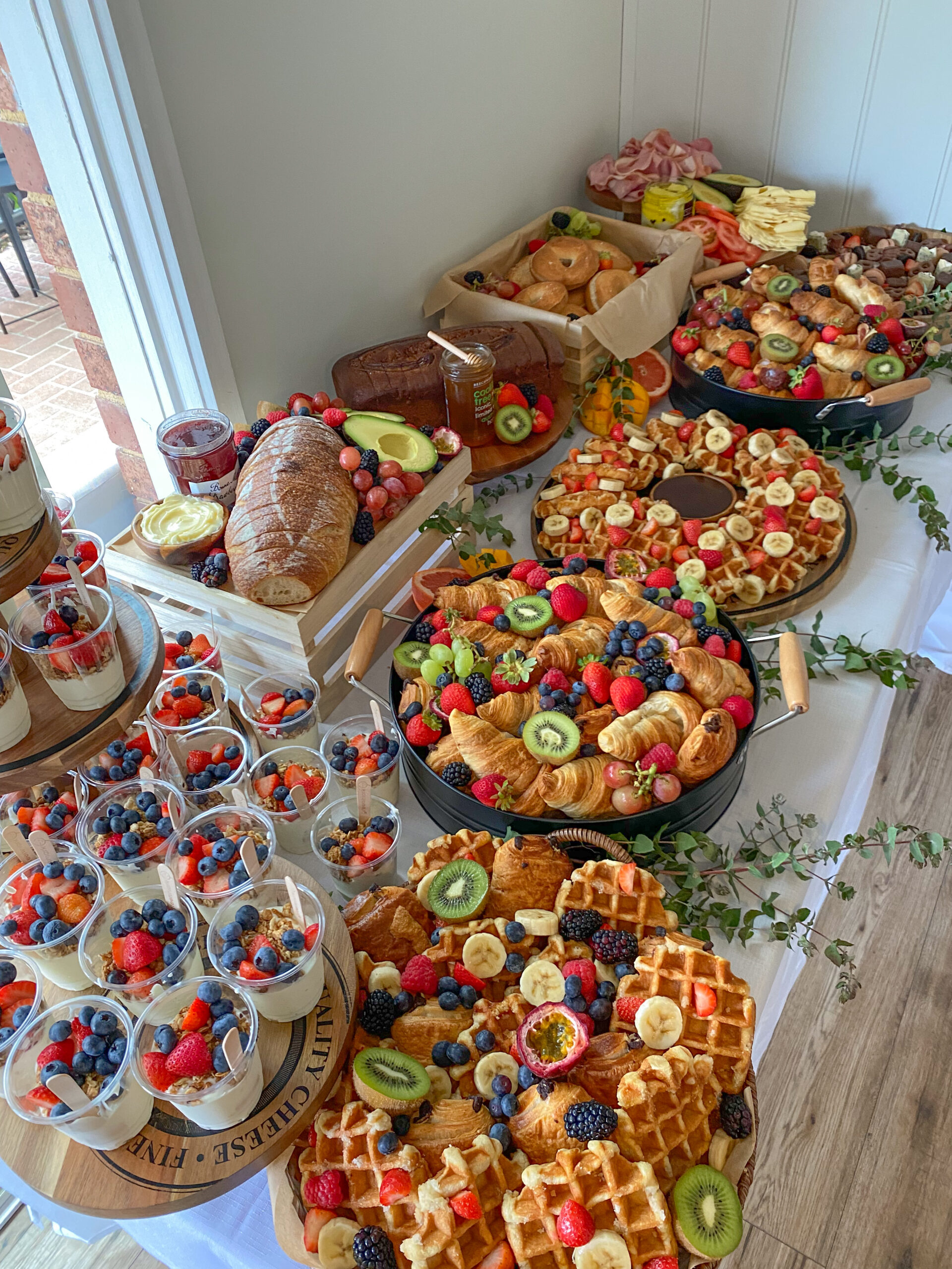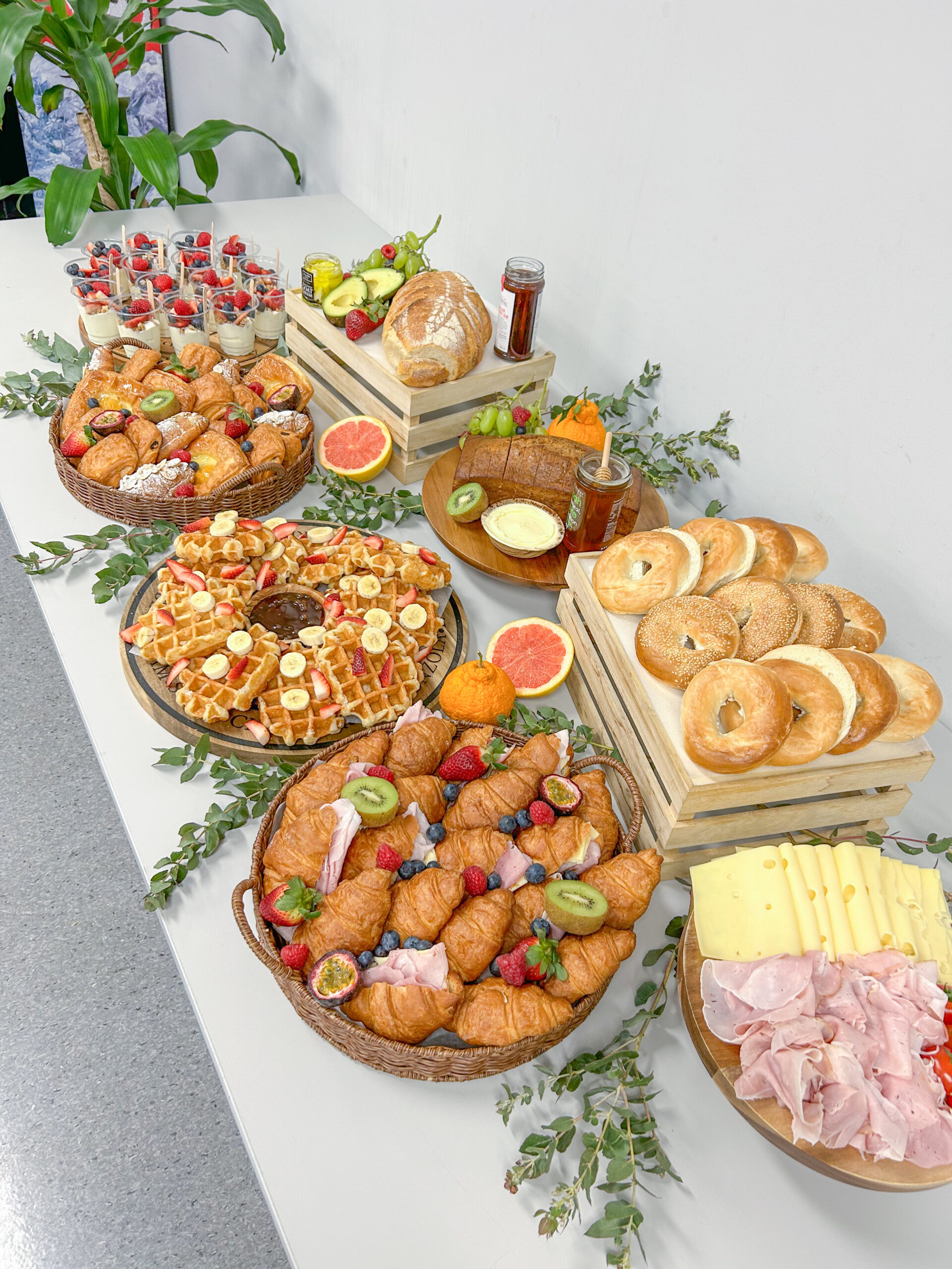 This is the best way to start your morning; croissants, waffles, banana bread and more. Whether it’s for a corporate breakfast or wedding morning, this is perfect brunch catering option.